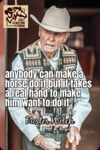 Buster Welch nous dit ‘’tout le monde peut amener le cheval à exécuter mais ça prend tout un savoir-faire pour l’amener à vouloir le faire’’.