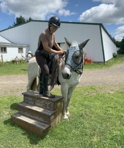 Puis un jour au montoir elles ont pointé et leur cheval s’y est installé sans bouger. Enfin suite à leur démarche les chevaux ont dit ‘’OUI’’ au montoir!