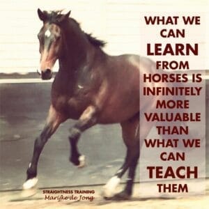 Quand on travaille avec notre cheval il est important de porter attention à son bon vouloir, à son sens des responsabilités et à sa connexion sur nous car notre cheval a aussi son agenda. Les articles ‘’Soyons ambassadeurs du ‘’oui’’ de la série RESPONSABILISER de même que ‘’Le BON VOULOIR : un cheval qui dit ‘’oui’’ de la série PARTENARIAT décrivent bien ces concepts. Tout comme les articles de la série PARTENARIAT ET RESPONSABILISER SON CHEVAL. Marijke de Jong de Straightness Training nous incite à ouvrir nos horizons afin que notre communication soit bilatérale lorsqu’elle dit ‘’ce que nous pouvons apprendre de notre cheval est énormément plus valable que ce que nous pouvons lui enseigner.’’