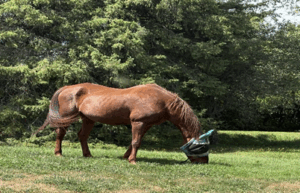 Un code que j’utilise l’été c’est le ‘’bain’’. Indy adore l’eau et quand il fait chaud même si elle est loin je lui demande si elle veut un bain et elle vient se faire arroser avec le boyau d’arrosage près de la sortie du paddock même si le boyau n’est pas encore ouvert. Ce qui est intéressant c’est qu’à chaque printemps quand je l’invite à prendre un bain, elle se rappelle toujours du code et ce n’est pas parce que j’ai préparé le boyau.