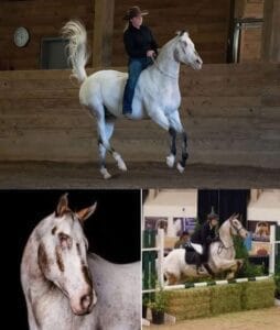 Le site Facebook Endo the Blind recèle d’une foule d’exemples d’un cheval non voyant qui travaille en liberté et négocie divers patrons parmi des barres au sol en écoutant les codes verbaux donnés par son leader. Endo un hongre Appaloosa de 22 ans est inspirant. Ancien sauteur avant de devenir non voyant, il négocie même des sauts avec les directives de sa personne. C’est TRES impressionnant.