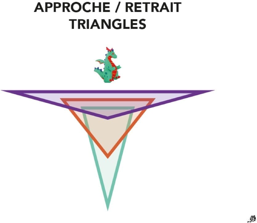 Tout comme pour les cercles, l’objet/endroit inquiétant peut être au centre ou à l’extérieur. Pour ce qui a trait au développement de la confiance les mêmes principes s’appliquent que ceux décrits dans le texte sur les cercles et ci-bas pour les triangles :