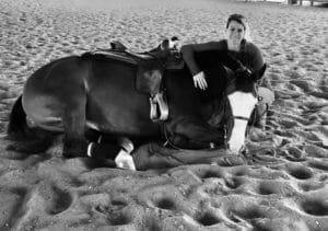 Par la suite lors d’une clinique de ‘’despooking’’ au Club Équestre Argenteuil, Eric St-Arnault m’a demandé si Indy se coucherait en imitant ma position corporelle soit de plier mes genoux. Un succès inattendu! Il faut dire que lors des 3 années antérieures avec Jerry Williams et Pete Rodda Indy avait certes mis en pratique d’imiter ma détente, pré-requis absolu au coucher.