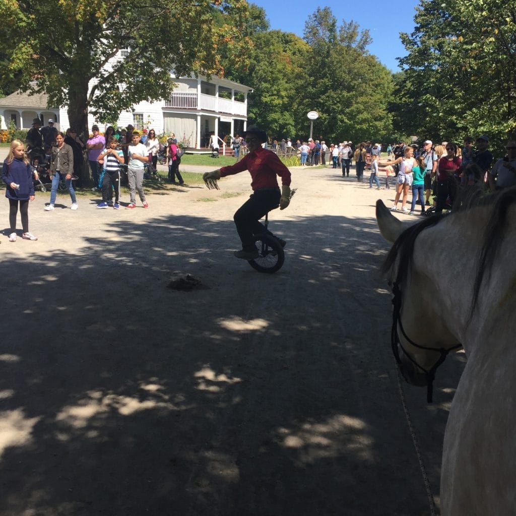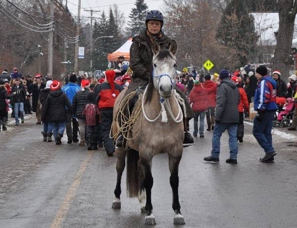 Une photo où je suis particulière fière d’avoir gardé mon calme. Indy n’est qu’à sa deuxième parade, à 6 ans. Le camion tirant le char allégorique derrière nous a fait défaut et a dû s’arrêter. Il était suivi du camion de pompier qui avait gyrophare et sirène en fonction. OUF! Indy s’est tout simplement retournée, quelque peu inquiète, pour voir ce qui se passait. Évidemment, elle ne connaissait pas les camions de pompier mais l’équipement de ferme oui. J’ai réussi à ne pas tirer sur les rênes et puis elle s’est retournée et a poursuivi la parade, tête basse. Photo publiée sur un site web où on me taquine en disant qu’Indy faisait la parade à reculons. Un bel exemple pour démontrer que c’est le mental/émotif qui contrôle les pattes du cheval et non les mains. Photo : PunkinPatchFarm