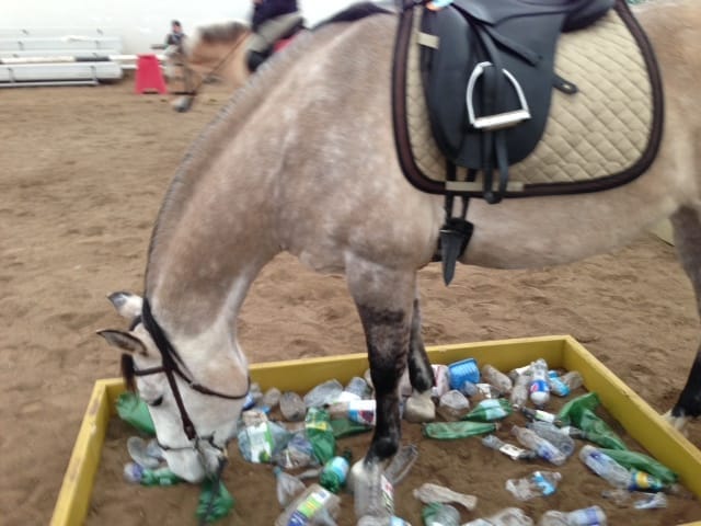 Lorsqu’on joue avec son cheval que ça soit au sol ou en selle et qu’on lui présente de nouveaux objets, penser aux stades d’exploration afin de développer sa curiosité et sa confiance.