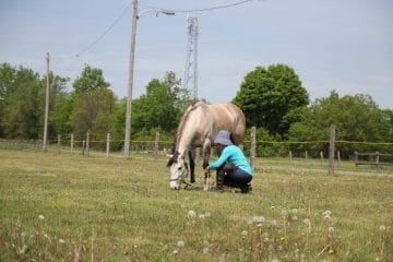 Afin d’aider notre cheval à se détendre, le leader doit être détendu, respirer lentement et son focus n’est pas sur sa liste d’épicerie ou de choses à faire. L’humain doit ‘’ vider ses pensées’’ afin d’être entièrement avec son cheval : plus facile à dire qu’à faire!
