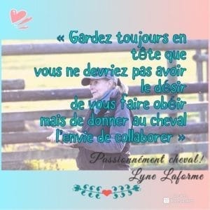 Puisque j’ai mentionné les rênes ci-haut, je crois important de parler de certains concepts et de laisser Lyne peaufiner le texte. Dans ma formation classique malgré les excellents entraîneurs je n’ai pas vraiment appris à développer mes chevaux mentalement et émotionnellement je dois humblement avouer que j’avais les mains fortes……..… Bien malheureusement pour mes chevaux. Puis il y a 15 ans j’ai rencontré un horseman exceptionnel lors d’une clinique avec Poney le fjord de ma propriétaire qui était tout à fait incontrôlable. Il avait appris à utiliser sa force contre les cavalières et attachez votre tuque (expression québécoise 😀) car quand il déguerpissait au grand galop, eh! bien il s’arrêtait à la porte de son paddock. Certes que ça voulait tout dire, le paddock était son “sweet spot’’. Un stage où j’ai eu malgré l’expérience de vie de mes 60 ans la larme à l’œil 4 jours de temps : mais j’avais compris le message. Ce fut ma première expérience où j’ai réalisé que :