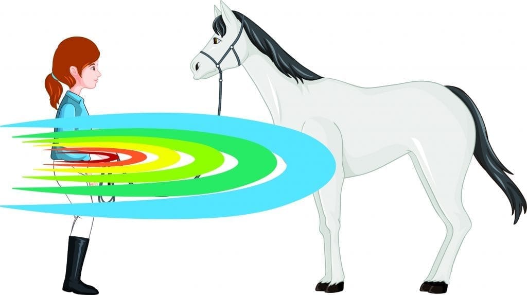 Tout en éduquant le cheval à répondre au toucher pour déplacer ses pieds ou à faire céder au licol, nous lui apprenons aussi à répondre à notre énergie qui débute par une intention. C’est ce dont nous avons besoin pour longer, pour le recul sans contact, pour les déplacements des hanches et des épaules ou pour tout mouvement où ne sommes pas en contact direct avec le cheval.