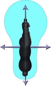 Nous avons étudié dans le 4e article de la série sur le PARTENARIAT ‘’RÉCLAMER SON TERRITOIRE’’ les 4 quadrants du cheval divisé par les “drive lines’’ (lignes directrices) sur l’axe longitudinal de même que sur l’axe latéral. La bulle chez le cheval tel que démontré dans le schéma plus haut, est plutôt en forme de poire inversée autour de leur corps : elle est plus grande en avant qu’en arrière parce que le cheval a 60% de son poids sur ses antérieurs lorsqu’au repos ou au pas.