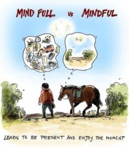 Quand nous entrons dans le monde de nos chevaux nous devons laisser nos soucis ailleurs et communiquer avec eux dans un langage qui est clair pour eux. Ce schéma que j’utilise très souvent est tellement important; ça nous demande beaucoup d’effort mental pour éteindre, si je peux dire, nos pensées et s’ancrer au sol, à la terre et se connecter à notre cheval et je dirais apprendre à se la boucler et non parler tout le temps entre copines.