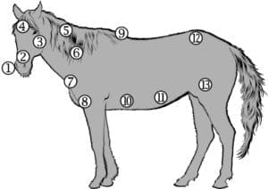 Un point vulnérable chez le cheval; ça dit au cheval soit de sauter vers l’avant ou de ruer par les membres arrière.