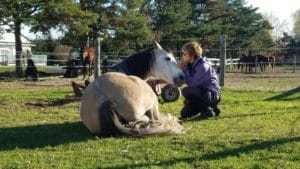 Quand l’humain caresse, gratte le garrot ça diminue beaucoup le stress chez son cheval.