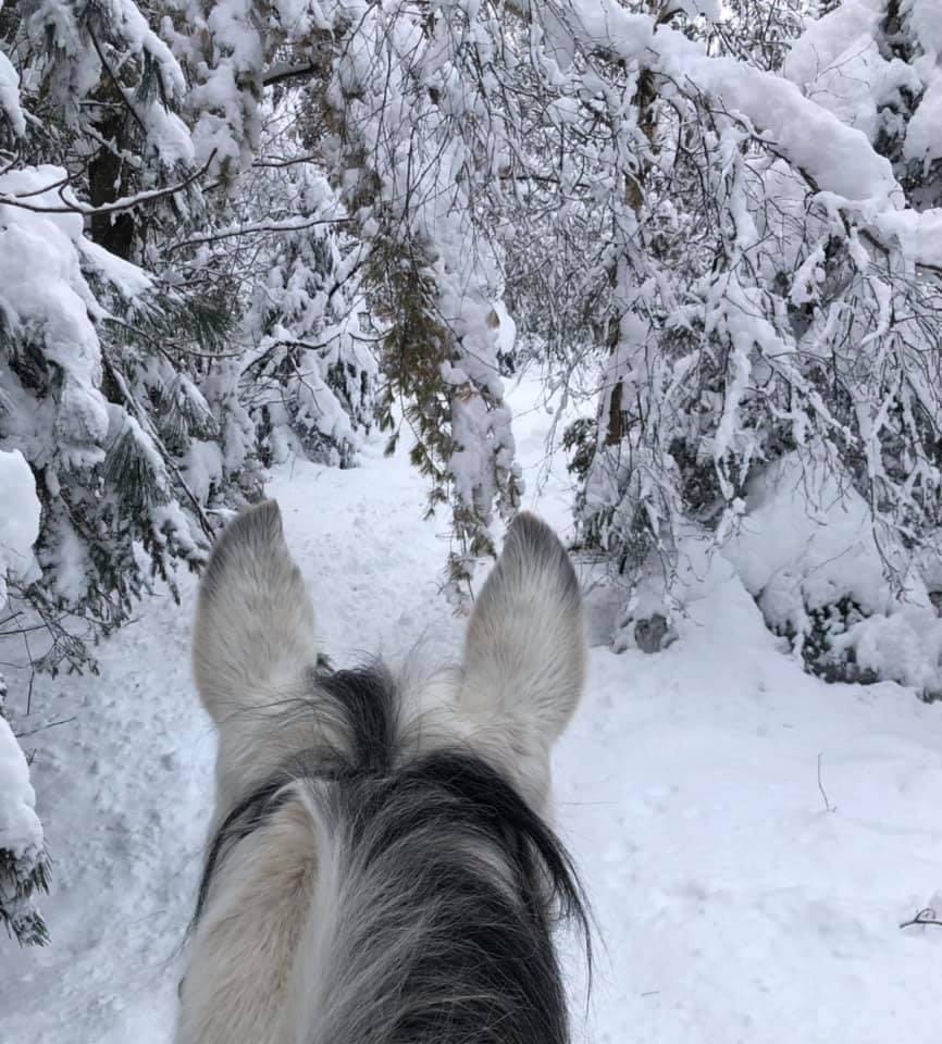 Un autre exemple, c’est la préparation nécessaire pour habituer un cheval à l’attelage et pour ceux qui ont de la neige, faire du Ski Joring 😍.