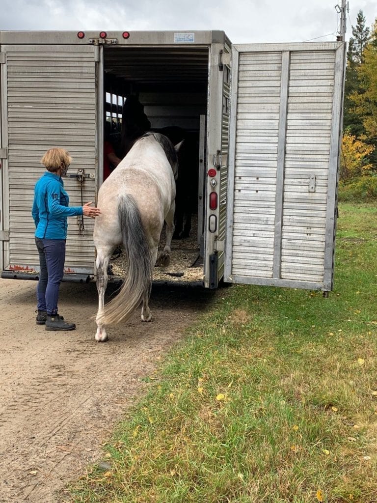 Le but ultime c’est que le cheval soit détendu et cherche à aller dans la remorque car il n’y a plus de pression exercée sur lui à ce moment. Je n’oserai pas dire que la remorque est agréable pour un cheval mais lorsque bien apprivoisée, le cheval s’y sent en confiance et y est à l’aise.