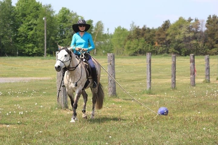 Je pratique aussi cette technique en laisse quand je vais à des endroits nouveaux avec mes chevaux; j’appelle ça le jeu du ‘’meneur’’ en ce sens que c’est le cheval qui dicte le rythme d’exploration. Ainsi le cheval explore tous les coins lorsqu’il se sent en confiance.