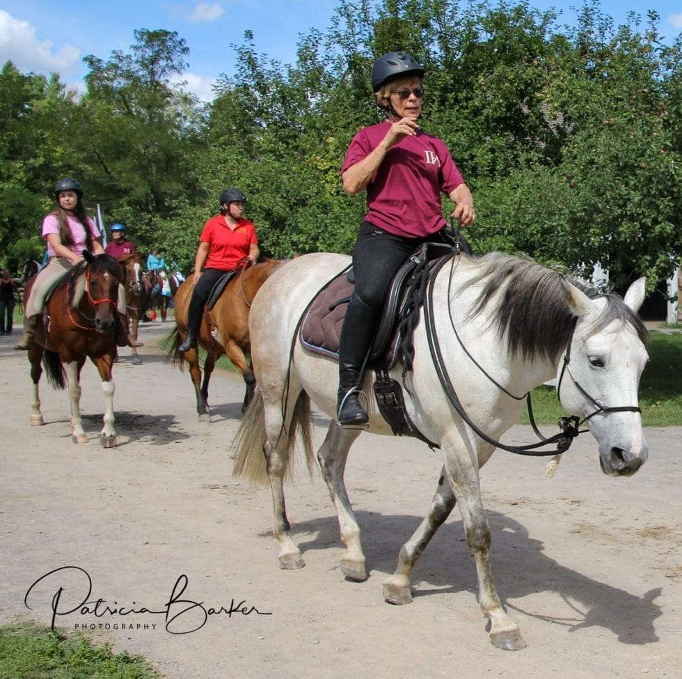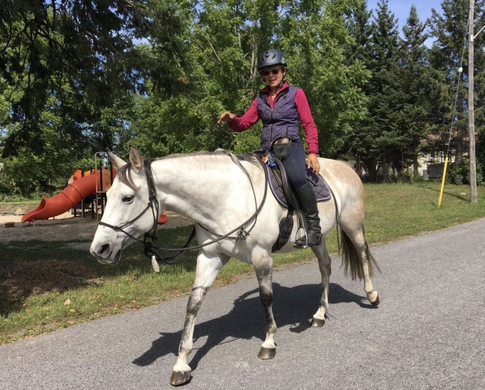 Denyse Rousselet, cavalière du Québec depuis 35 ans, a eu l’immense privilège depuis une douzaine d’années de voyager à la rencontre de nombreux horsemen/horsewomen fort reconnus pour leurs compétences en horsemanship tout en étant aussi réputés pour leurs performances exceptionnelles avec leurs chevaux. Plusieurs stages en France, Italie, Costa Rica, USA, Ontario et Colombie Britannique totalisant environ un an, lui ont inculqué des notions, concepts et stratégies pas fréquemment enseignés dans nos milieux équestres. Ce cheminement a amené Denyse à être reconnue par ses conférences et cliniques sur le développement d’un bon cheval de randonnée ainsi que des diverses stratégies afin de développer un cheval confiant, sécuritaire et bon partenaire.