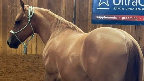 Approchez votre cheval à angle de 45 degrés en visant son postérieur. Quand on regarde le postérieur, un cheval qui cède à la pression du regard donc de votre énergie (le DRIVE) déplacera son postérieur ce qui dirige sa tête dans votre direction, un atout fort désirable. L’article 10 sur CÉDER À LA PRESSION, de cette série sur le PARTENARIAT explique bien cette technique.