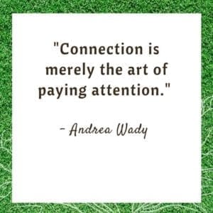 Andrea Wady de Grande Bretagne reconnue pour son concept de liberté pure nous dit que la connexion c’est une prise de conscience de nos besoins, nos états d’âme et nos attentes. Pour Andrea, connexion c’est l’art de PORTER ATTENTION! Un article sur ce concept ‘’Liberté pure’’ dans la série APPROFONDIR NOTRE COMMUNICATION traite de ce concept.