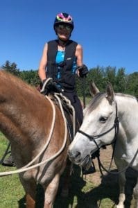 Denyse Rousselet, cavalière du Québec depuis 35 ans, a eu l’immense privilège depuis une douzaine d’années de voyager à la rencontre de nombreux horsemen/horsewomen fort reconnus pour leurs compétences en horsemanship tout en étant aussi réputés pour leurs performances exceptionnelles avec leurs chevaux. Plusieurs stages en France, Italie, Costa Rica, USA, Ontario et Colombie Britannique totalisant environ un an, lui ont inculqué des notions, concepts et stratégies pas fréquemment enseignés dans nos milieux équestres. Ce cheminement a amené Denyse à être reconnue par ses conférences et cliniques sur le développement d’un bon cheval de randonnée ainsi que des diverses stratégies afin de développer un cheval confiant, sécuritaire et bon partenaire.