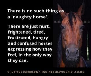 Ce texte que j’utilise souvent car je le trouve très importante : ‘’Il n’y a pas de cheval malin. Il y a que des chevaux blessés, souffrants, inquiets voire anxieux, fatigués, frustrés, affamés ou confus qui tentent de s’exprimer de la seule façon qu’ils peuvent’’.