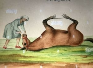 Photo : heureusement pour nos chevaux, la médecine vétérinaire a beaucoup évolué depuis le temps où un cheval souffrant de coliques était couché sur le dos, les pattes attachées et on lui donnait du vin mêlé d’huile d’olive. Crédit : Madbarn