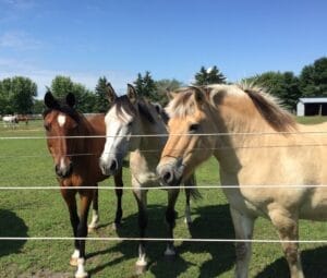 Photo : Les 3 chevaux se pointent à la clôture car ils savent que nous irons en randonnée, moi assise sur le fjord et les 2 autres en cheval de bât. Je n’ai pas à aller les chercher ils veulent venir avec plaisir! Leur faciès démontre leur intérêt! Je n’ai pas besoin de les appeler quand ils voient ma copine aller chercher son cheval au paddock. Ils savent qu’avec cette copine nous irons nous promener car je n’y vais jamais seule avec deux chevaux en cheval de bât. Seul problème c’est que parfois je veux qu’un cheval car cette journée-là avec la copine on a l’intention de faire une plus longue randonnée avec ravins etc…Je les remercie toujours de se présenter et passe du temps avec eux.