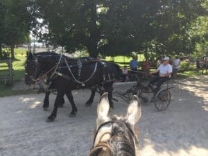 Photos : Au Horse Lovers weekend Indy a les oreilles et le regard fixé sur une calèche. En randonnée, en traversant le lac Indy a les oreilles pointées sur le côté car le cheval de ma copine n’est pas habitué à l’eau et il est un peu inquiet. Indy lui dicte où se placer à ses côtés et de ne pas la devancer.