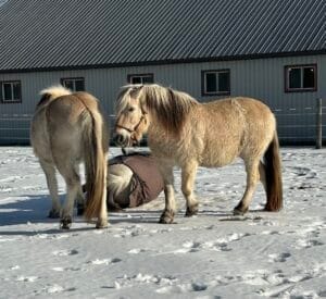 Indy est un peu plus indépendante, elle se pointe quand je suis prête à faire quelque chose avec elle car je communique avec elle par intention. Je passe beaucoup de temps dans le paddock à nettoyer, réparer les clôtures, l’abri, mettre les filets de foin, nettoyer les abreuvoirs, jouer avec les fjords etc… Elle sait quand je suis prête pour elle. L’article ‘’Le pouvoir de l’intention’’ de la série APPROFONDIR NOTRE COMMUNICATION explique bien ce concept.