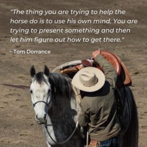 Cette série d’articles est centrée sur le développement de la sphère mentale de notre cheval. Tom Dorrance, nous le dit bien. ‘’Ce que nous essayons de faire c’est d’aider le cheval à utiliser sa pensée. On tente de lui présenter quelque chose et puis on le laisse figurer comment trouver la solution.’’