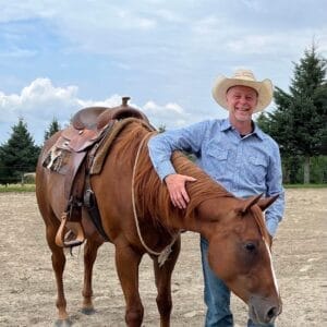 Steeve Garon, excellent horseman québécois m’a inspirée quand j’ai vu sa vidéo avec sa jument de 4 ans Dakota montée sans bride. L’article ‘’Monter sans bride avec cordelette autour du cou’’ de la série RESPONSABILISER SON CHEVAL montre la vidéo. Cette photo de Steeve précédant la monte fait foi d’un cheval calme et détendu donc ouvert à être partenaire.