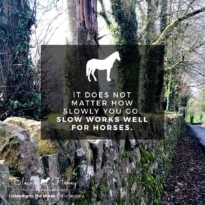 Photo : Commencez par ralentir, sortons de notre monde mental et ouvrons-nous afin d’écouter notre cheval.