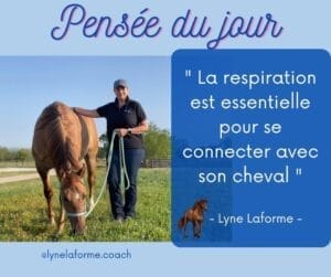 Ralentissez votre respiration. Prenons conscience de l’influence de notre respiration sur notre cheval. Linda Kohanov d’Eponaquest aux USA nous parle beaucoup du contrôle de notre respiration pour avoir un effet bénéfique sur le cheval. Même que nous parvenons à faire bouger notre cheval qu’en modifiant notre respiration. Et encore mieux ralentir notre cheval en ralentissant notre respiration.