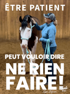 Charlotte nous rappelle que les humains sont beaucoup trop rapides lorsque nous manipulons notre cheval et que c’est une des premières causes de réactivité et du réflexe d’opposition que les chevaux démontrent.