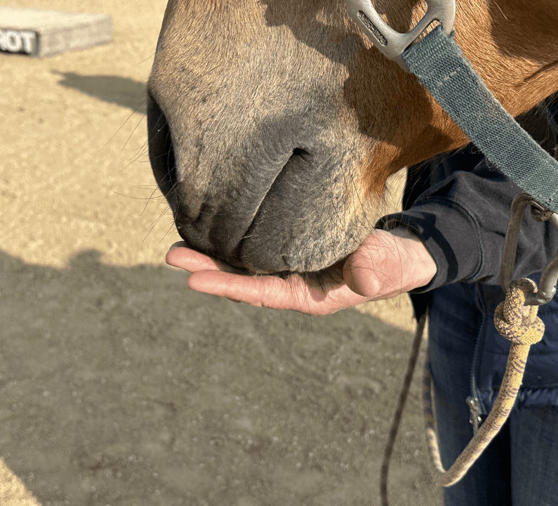 Pas conseillé non plus de laisser le cheval fouiller partout dans vos poches.